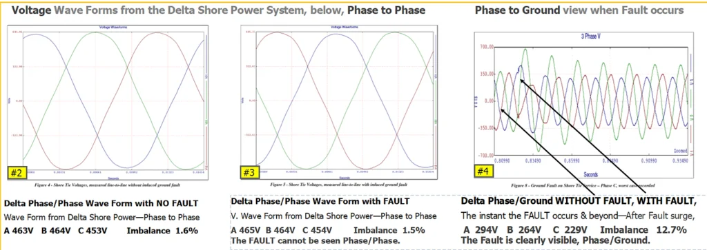 You don’t see the fault in Ph/Ph view! This Coast Guard Study summary compares Delta & Wye Soures on the same Ship, with and without VSGR installed. This 5page 11×17″ PDF also includes other case study Recorder information addressing Harmonics, which shows before & after VSGR was installed. Take a look at the free download below.
